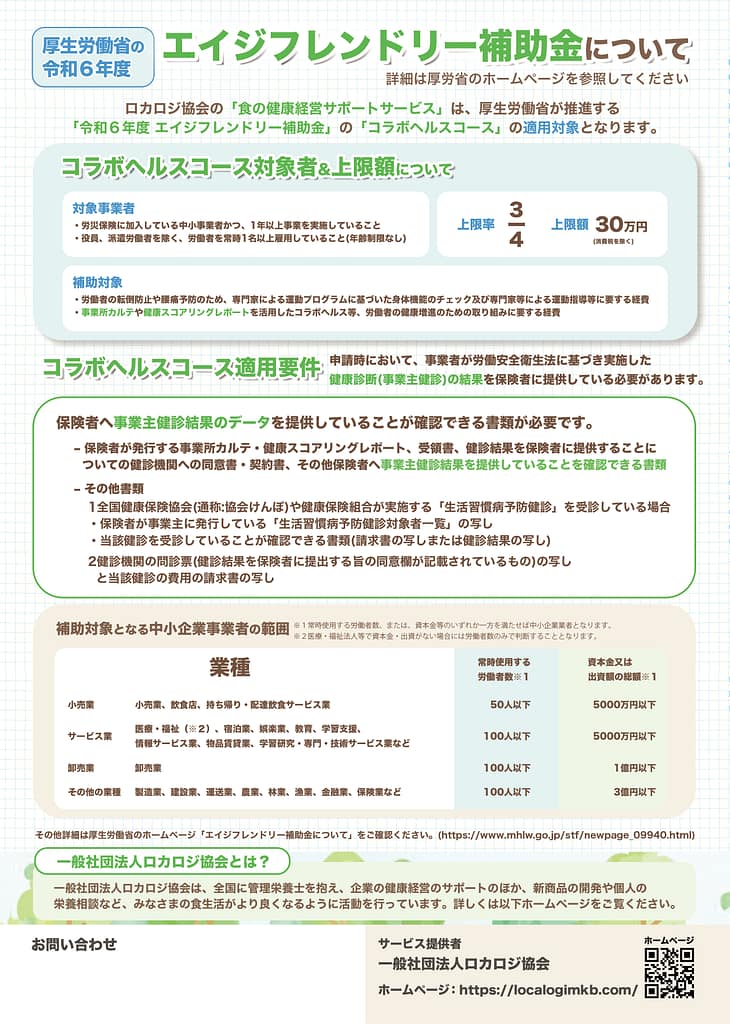 - 法人の「健康経営」を支えるため、企業の健康増進プログラムの一環として、従業員の健康管理体制の強化をサポートします。これにより、企業のイメージ向上や生産性の向上が期待されます。